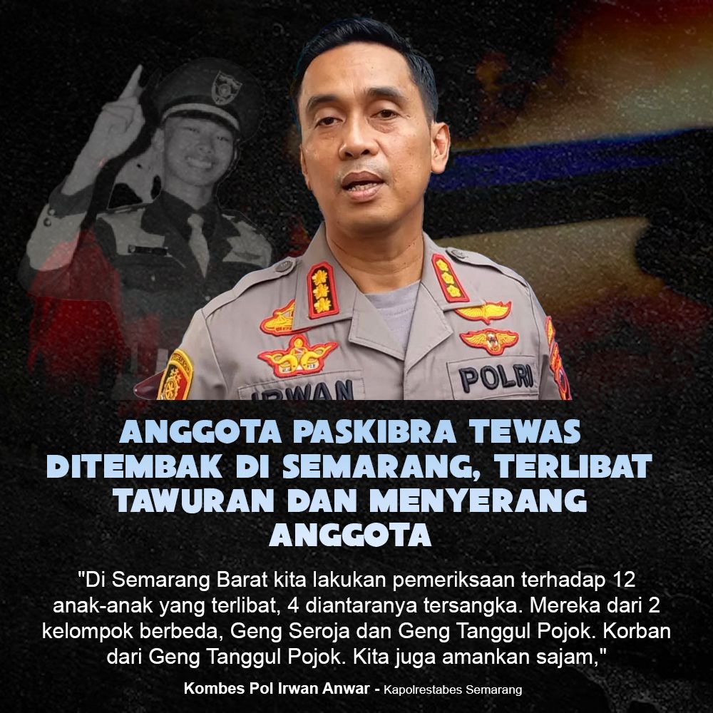 Semarang – Kapolrestabes Semarang Kombes Pol Irwan Anwar membeberkan insiden atau kejadian yang menimpa GRO (16), pelajar SMKN 4 Semarang yang tewas dan dua rekanya luka dipicu karena tawuran.