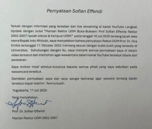 Fakta Menampar! Sofian Effendi Klarifikasi dan Revisi Ucapan soal Ijazah Jokowi